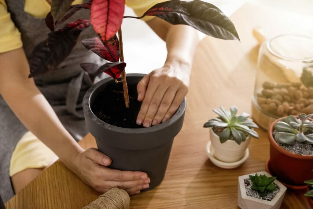 Частота пересадок зависит от возраста кротона и интенсивности его роста.