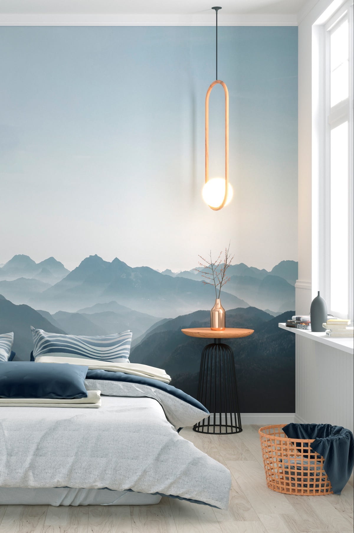 Если вы любите насыщенные оттенки, оформите цветными красками или обоями одну стену за изголовьем. Такой акцент оживит интерьер и не будет смотреться навязчивым.