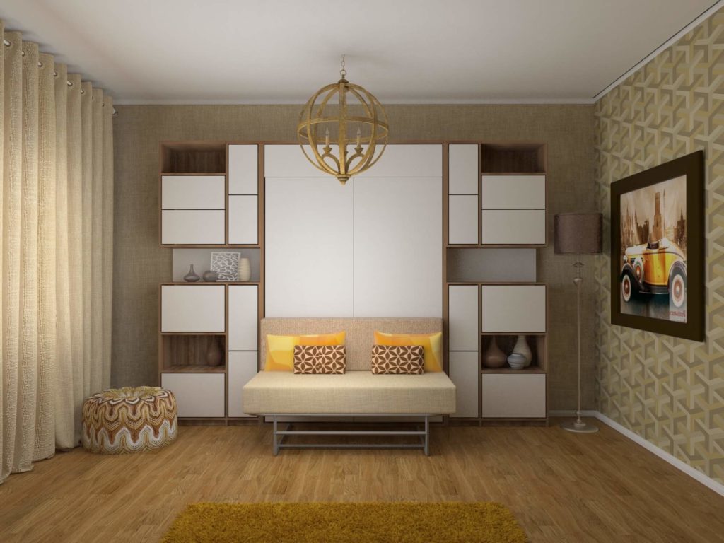 - Один из них предусматривает уборку кровати в стену;