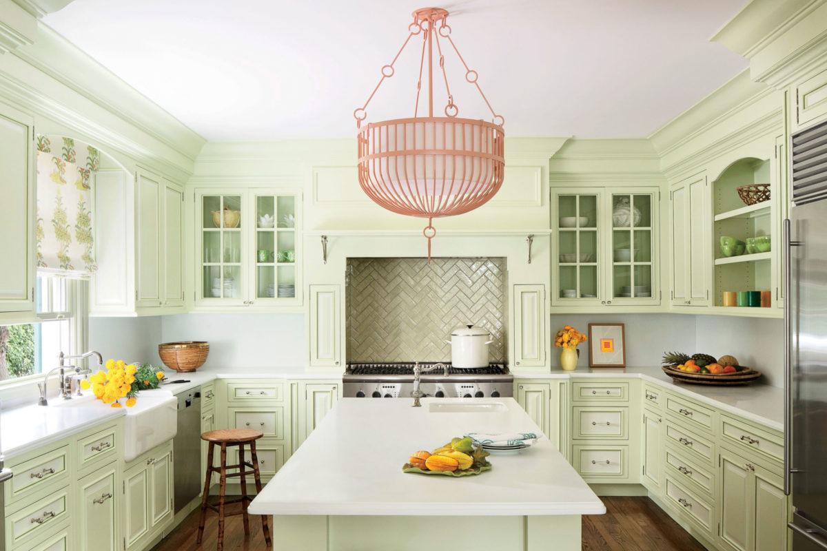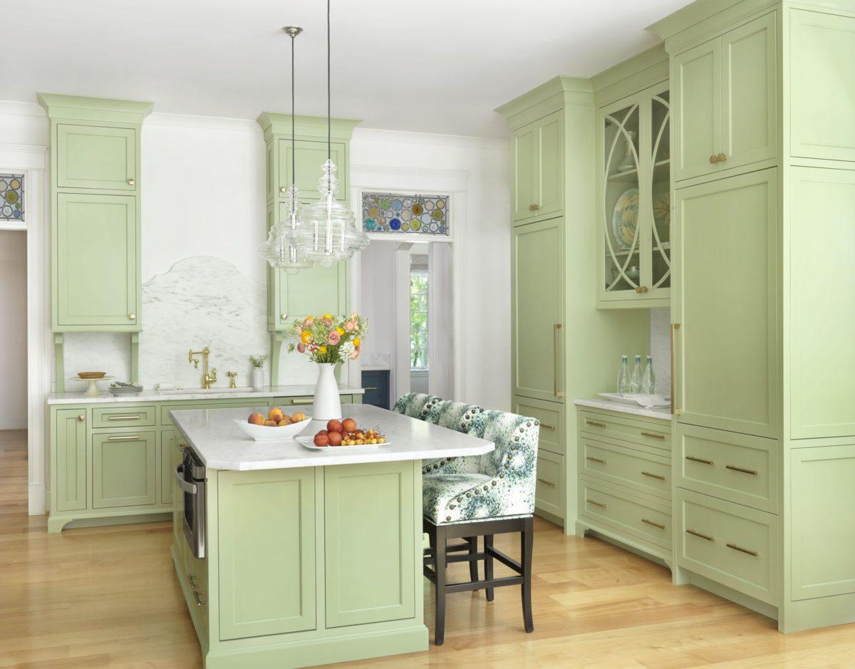 Для создания привлекательного интерьера на кухне дизайнеры часто используют фисташковый цвет
