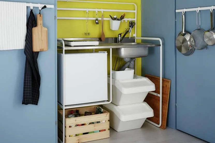 Обычная корзина для мусора может занимать много места на маленькой кухне. Вместо нее следует выбрать сортировочные контейнеры, которые могут быть сложены друг на друга. Они помогут разобраться с разделением типов отходов и переработкой.
