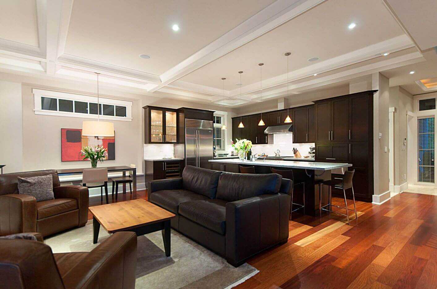 Выше мы уже упоминали, что совмещение помещений кухни и гостиной – идея для студий, больших кухонь и объединенных комнат со сломанной перегородкой.