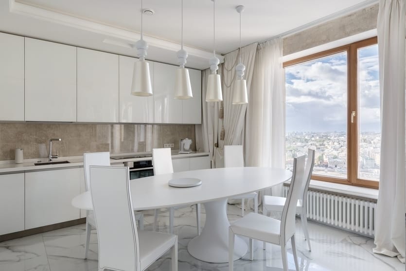 Чтобы кухня в белом цвете не разочаровала вас, особое внимание уделите отделке