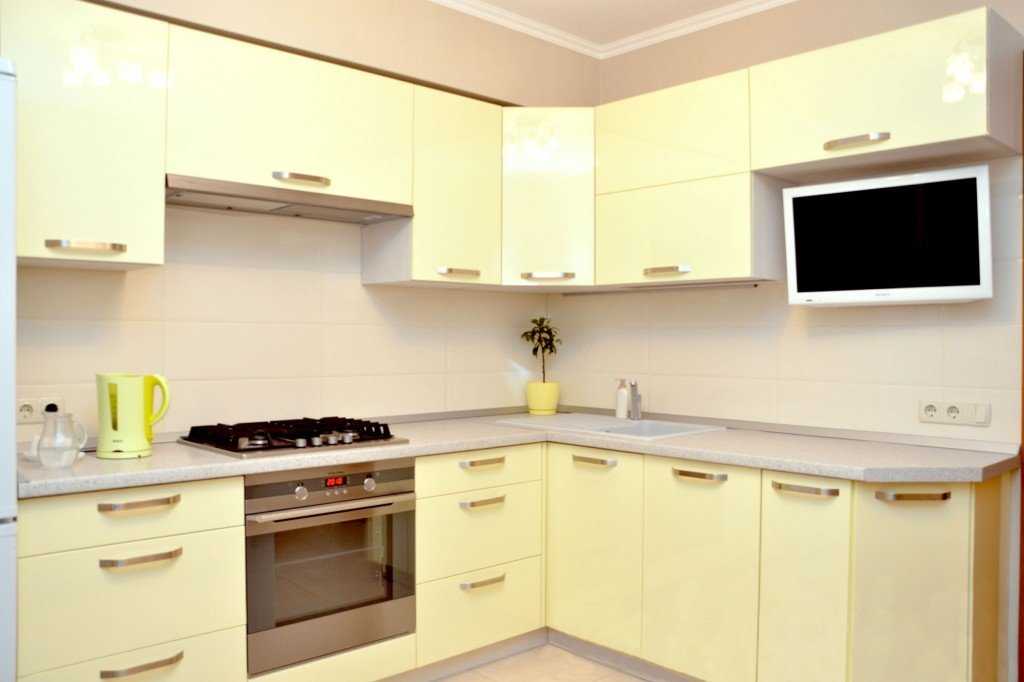 Белый цвет глянцевой поверхности зрительно увеличит в размерах маленькую кухню. Большая белоснежная кухня – эталон понятия «дорого». Но не нужно забывать, что яркий элемент, например, кухонный фартук над столешницей, сделает помещение выразительнее. Вариантов несколько: