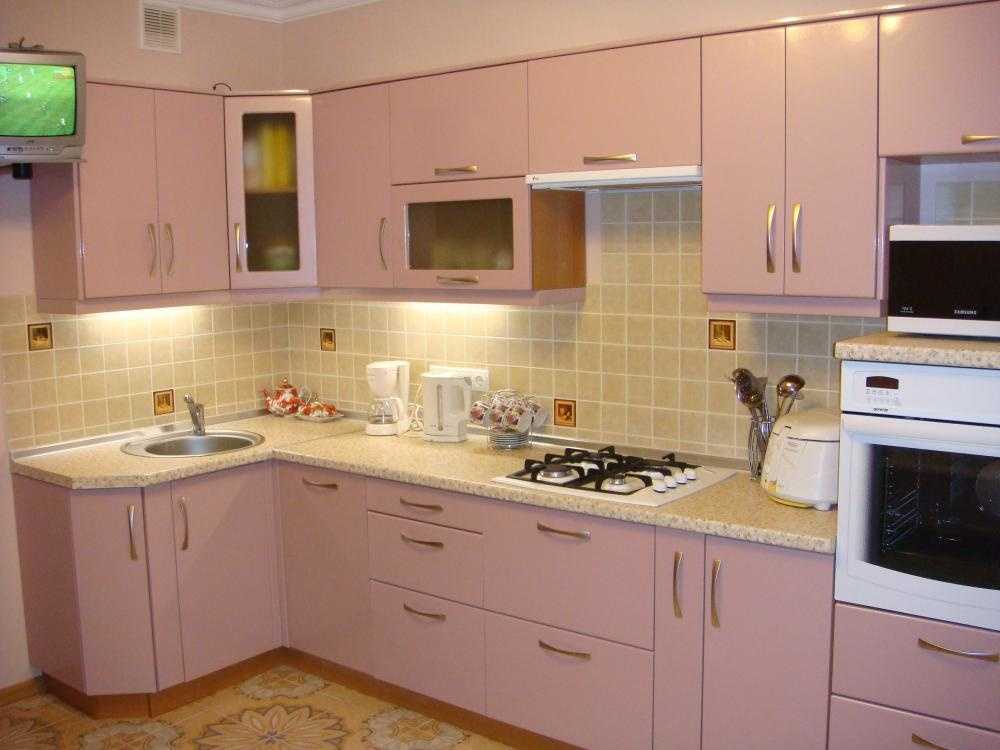 Следующий вариант, который подходит для помещения любой площади – угловой гарнитур. Благодаря рациональному использованию пространства в углу комнаты такая мебель для кухни позволяет быстро перемещаться между всеми секциями рабочей зоны.