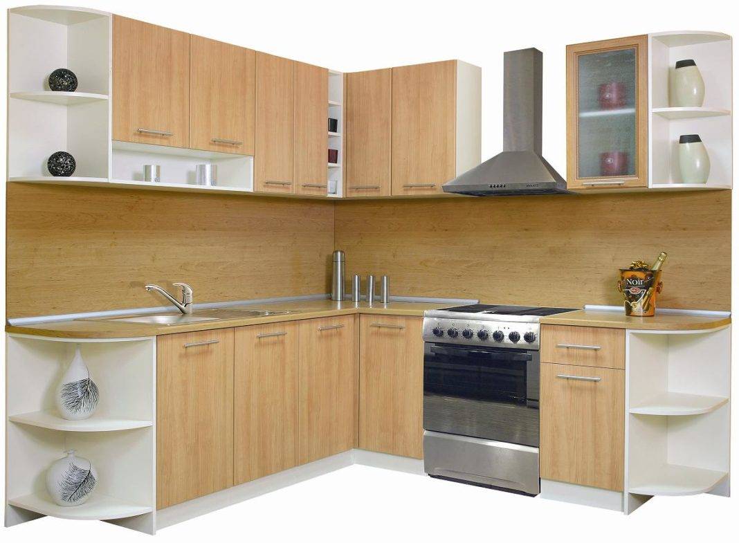 Рис.11. На кухне часто применяют панели МДФ ламинированные меламиновой бумагой. Эти панели ничем не уступают постформингу, но позволяют изготавливать не плоские элементы кухни, например, полукруглые.