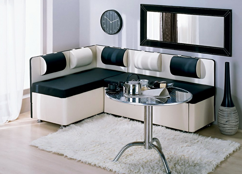 Угловое место на диване очень функциональное, и зачастую используется как обыкновенное место. Данная модель является очень вместительной, и очень хорошо вписываются в очень маленьких кухнях, даже в таких домах как хрущёвка, а также малосемейка.