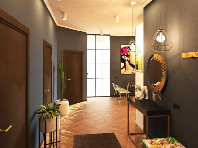 Прихожая с подобным стилевым решением задает тон другим жилым помещениям. Здесь уместно использование классических принципов эклектики, так как в большинстве случаев, коридор имеет небольшие габариты. В данном помещении применяют интересные и яркие вкрапления в виде деталей, которые отличаются не сколько функциональностью, а запоминающимся внешним видом.