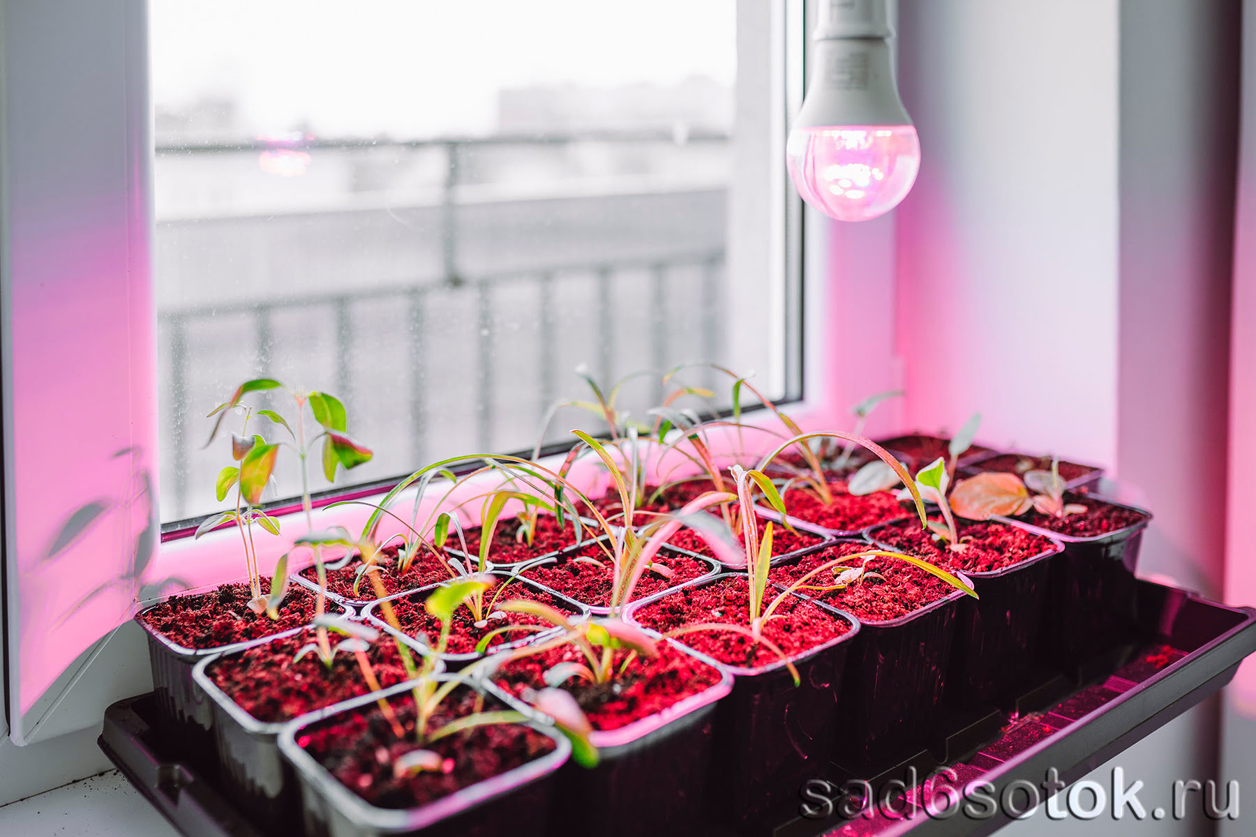 Если рассада выращивается на окне с солнечной стороны дома, то лампы включают только в пасмурную погоду.