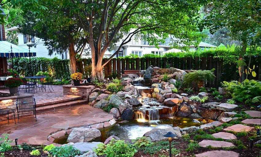 Любой приусадебный участок можно украсить при помощи водного объекта. При помощи дизайна на участках можно создавать такие водные объекты, как фонтаны, пруды, ручьи, бассейны и водопады. Для создания водных объектов на приусадебных участках используют: водоемы в готовой чаше, пленочные и бесшовные полимерные покрытия.