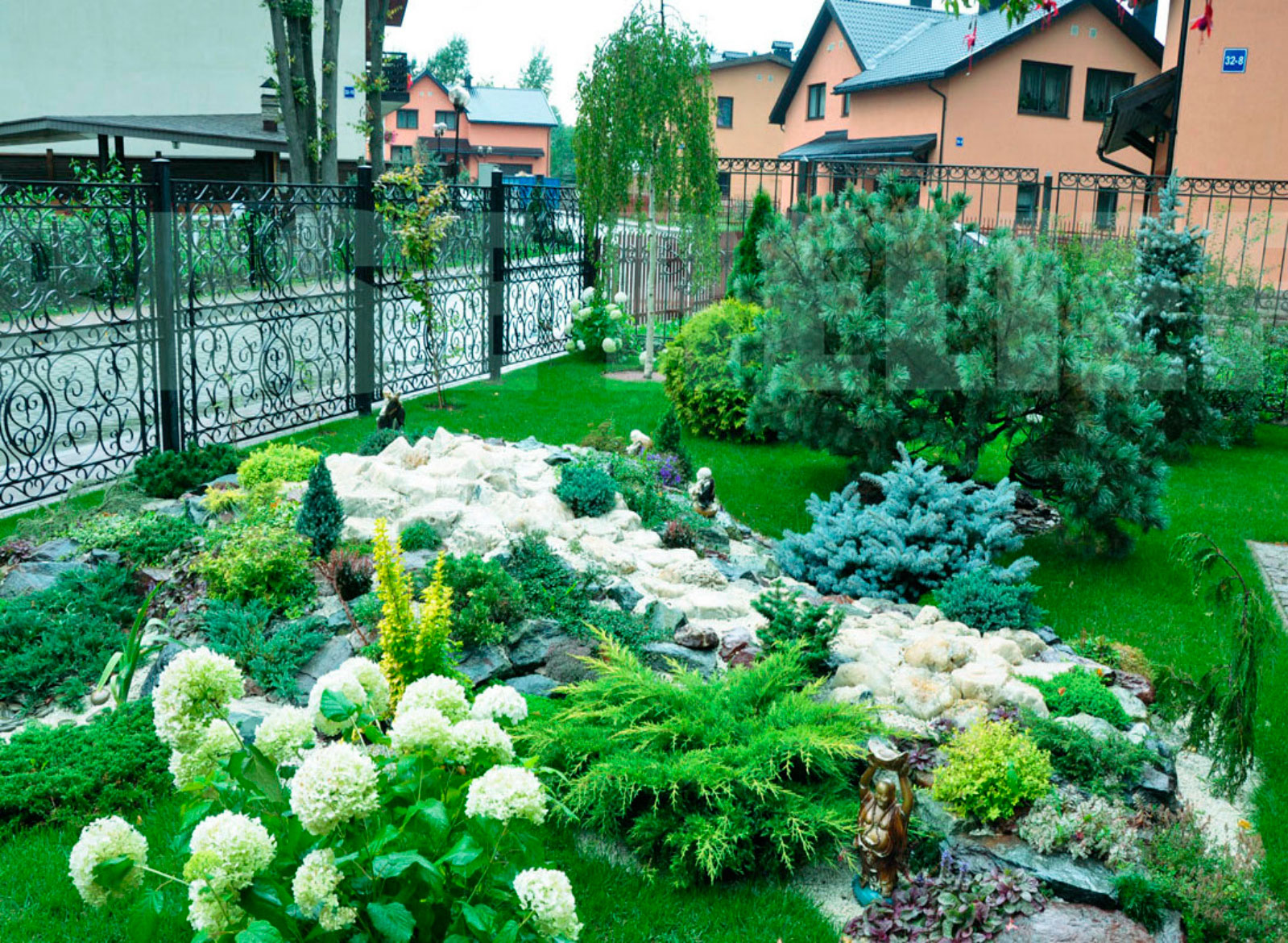 | Крупные декоративные элементы и конструкции | Бассейн, пруд, беседка, терраса, ограждения (заборы) и другие элементы. |