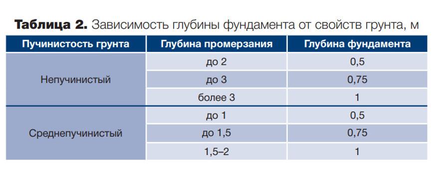 При проектировании небольшого одноэтажного дома, гаража, сарая или бани расчет ленточного фундамента может выполнить и владелец участка – но с обязательным учётом рекомендаций нормативных документов (СНиП II—Б.1—62 и др.). Стоит воспользоваться при определении глубины залегания основания и специальной таблицей