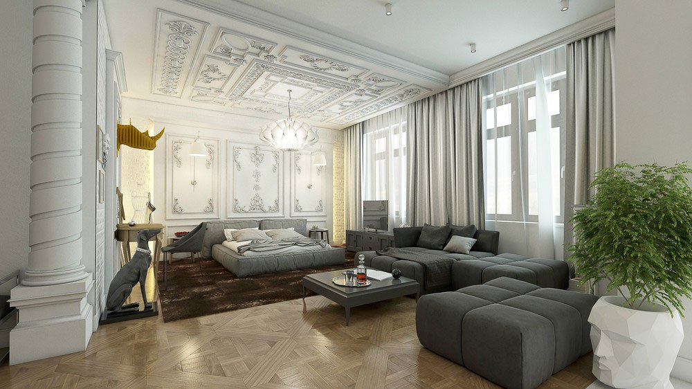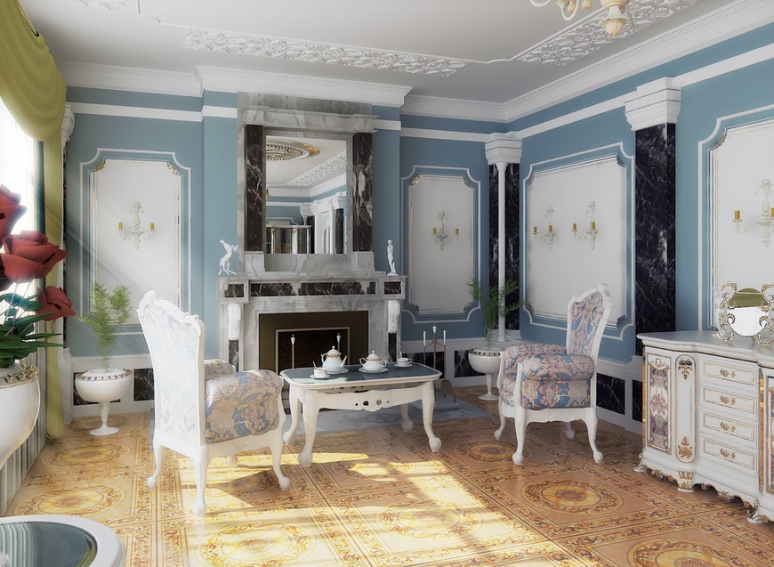 Красивый интерьер лепнина — попытки создать в помещении большое количество оттенков одного цвета не всегда удаются заказчику, всё начинает сливаться и помещение выглядит скучным.