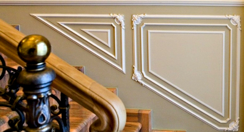 Лепнина в интерьере также используется в виде молдингов. Молдинги крепятся к ровной поверхности, представляя собой накладные декоративные планки, способные придать помещению законченный вид. Кроме того, с помощью молдингов можно своеобразно оформить потолок или стены, выделить особо важный предмет.
