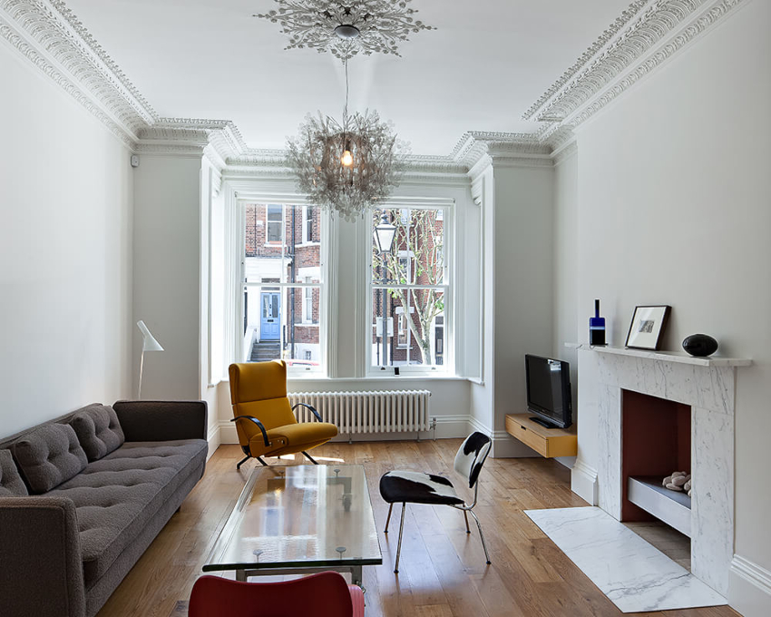 Самой распространенной областью применения гипсовой лепнины были и остаются вертикальные поверхности стен. Вы можете вдохновиться многочисленными примерами, но схему расположения молдингов лучше все-таки продумывать, исходя из особенностей планировки каждого отдельно взятого помещения. Учитывайте, где будут стоять те или иные предметы, их габариты. Так вы сможете максимально выгодно преподнести оформление самой стены — чтобы в итоге оно хорошо просматривалось с нескольких точек в комнате.