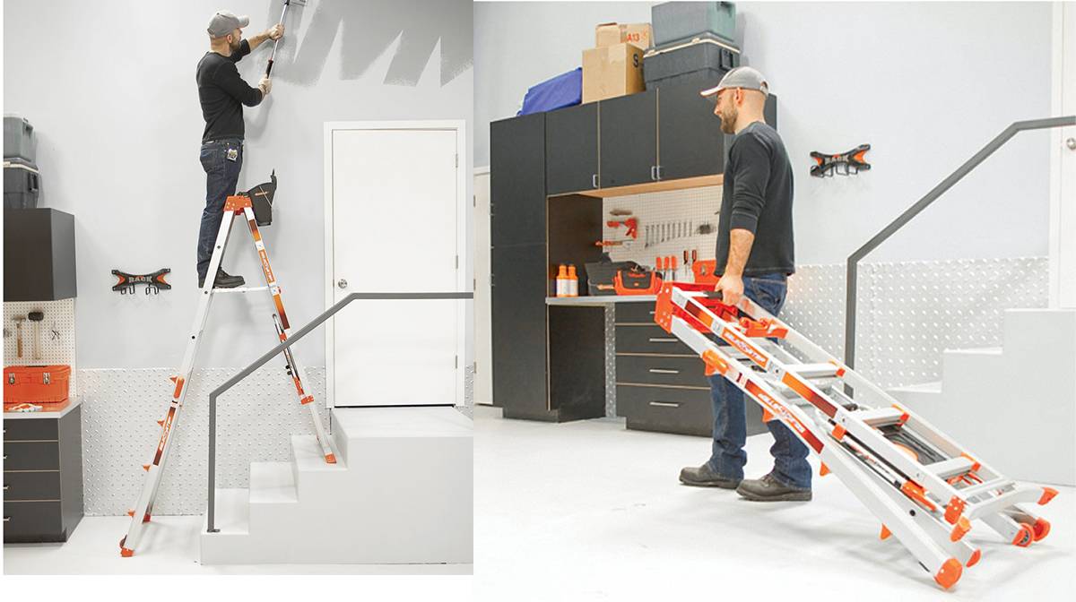 - Возможность сборки и складывания — удобство транспортировки, возможность превратить лестницу в стремянку, стойку, П-образную конструкцию;