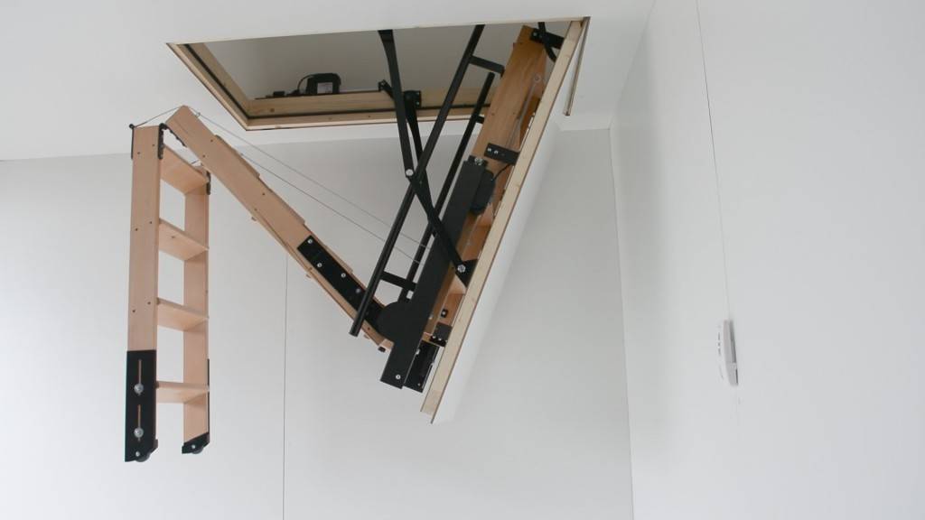 Некоторые люки оснащены специальным механизмом – подъемные устройства за несколько секунд опустят лестницу вниз. Если встроенная лестница ручного типа, то чтобы ее опустить, достаточно одного легкого движения руки.