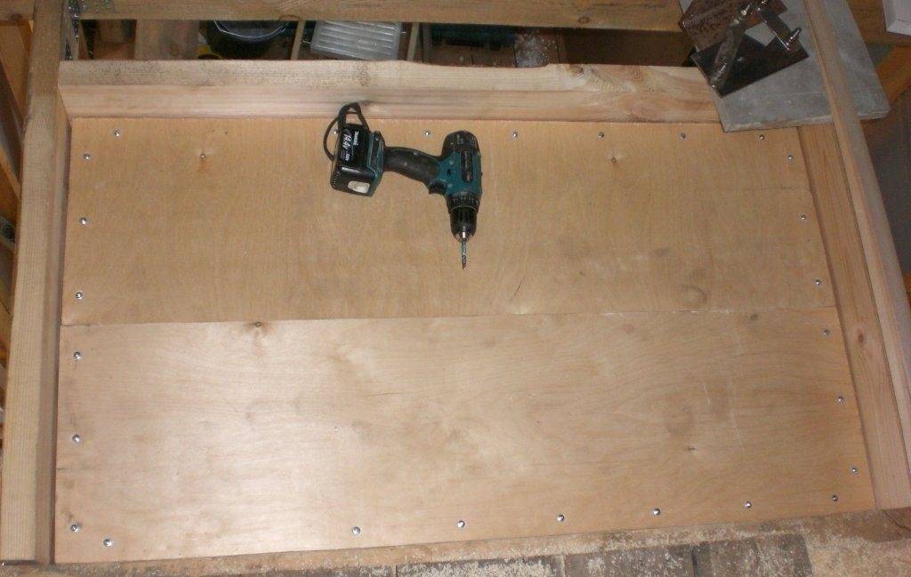 3. Далее к основе крепят крышку — подойдет обычный лист фанеры. Соединение дополнительно усиливают саморезанми.