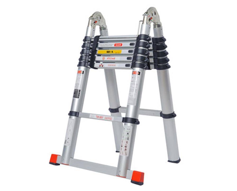 - Раздвижная конструкция подойдет для проведения работы на больших высотах. Если установить модель в виде стремянки, на которой секция выдвинута вверх, то она станет отличной приставной моделью. В ней будет 4 прочных опоры, за счет чего она будет отлично стоять на земле или любой другой поверхности. Такие конструкции можно отлично использовать в саду, огороде и при отделочных работах как внутри, так и снаружи помещения
