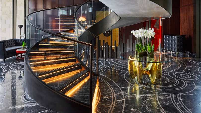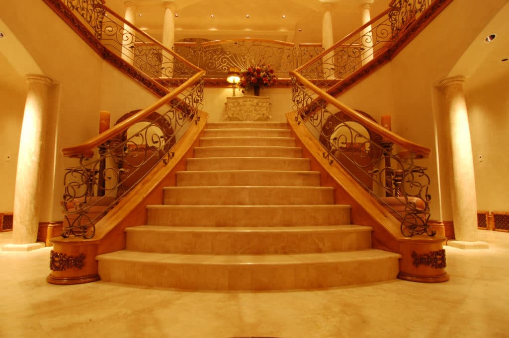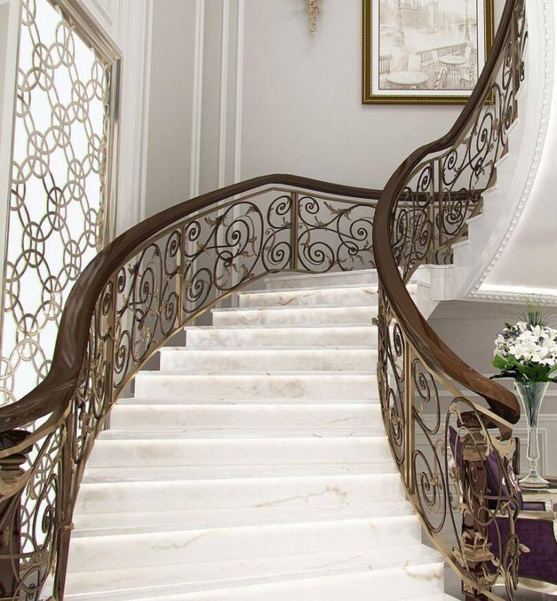 Мраморная лестница имеет роскошный внешний вид