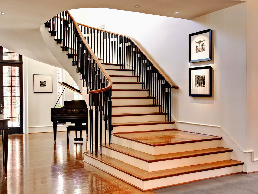 - Сочетание цвета, фактуры с интерьером помещения, в котором находится лестница.