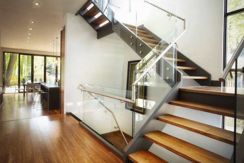 Стоит отметить, что у человека, впервые ступившего на лестницу со стеклянными перегородками, может возникнуть ощущение скованности или чувство страха. Однако это лишь первое впечатление, такие ограждения выполняются достаточно надежными.
