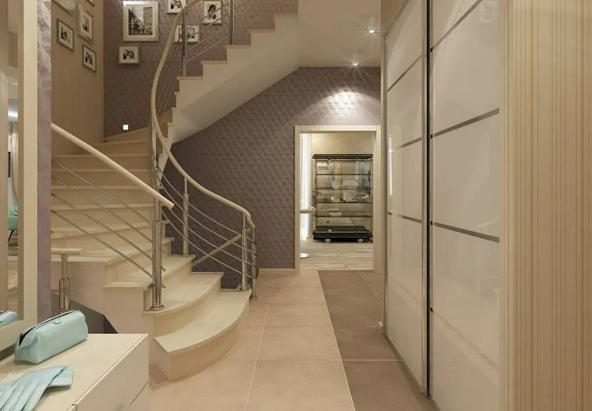Как упоминалось ранее, декор лестницы, расположенной в прихожей, подбирается в соответствии с остальным стилем помещения. Рассмотрим несколько популярных направлений наглядным образом.