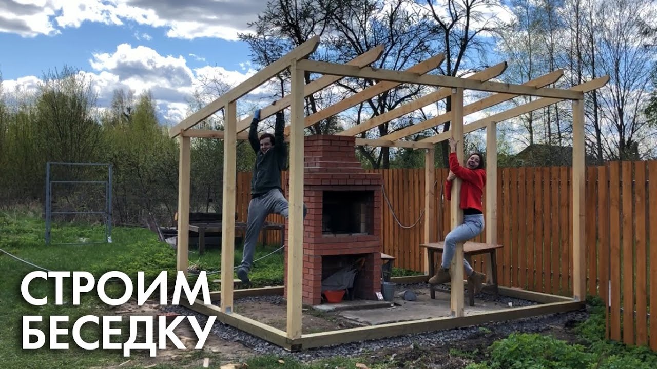 Самые популярные и простые конструкции открытых кухонь — это легкая веранда и беседка. Дешевый вариант — беседка со столбчатым деревянным фундаментом, каркасом из бруса и крышей, покрытой профнастилом или поликарбонатом. На краю установите гриль, мангал или печь.