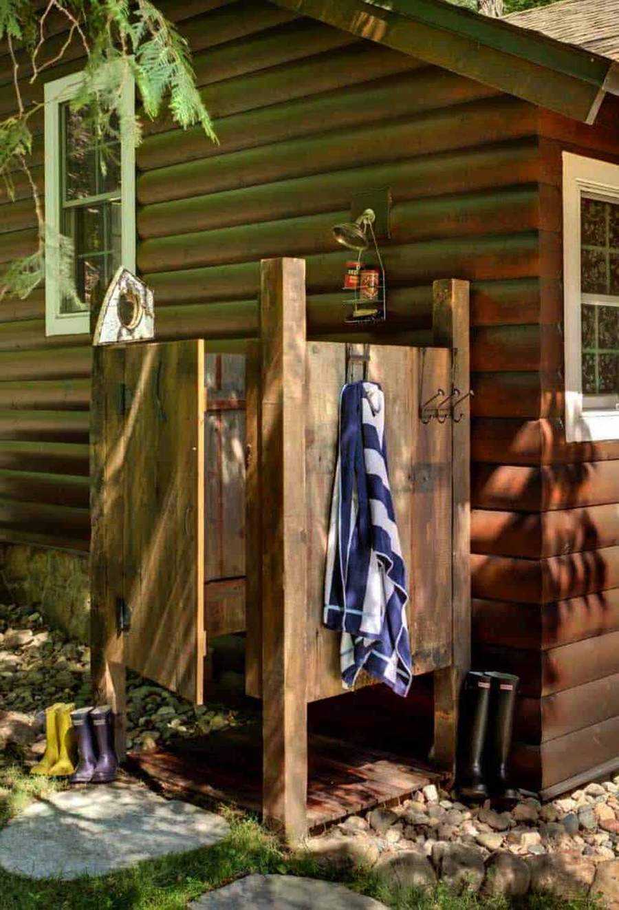 Деревянные постройки – это классика дачного летнего душа. Нередко их устанавливают в саду, где вечером становится прохладно, а вода успевает хорошо прогреться за день. К тому же такую кабину можно запросто сделать самому.