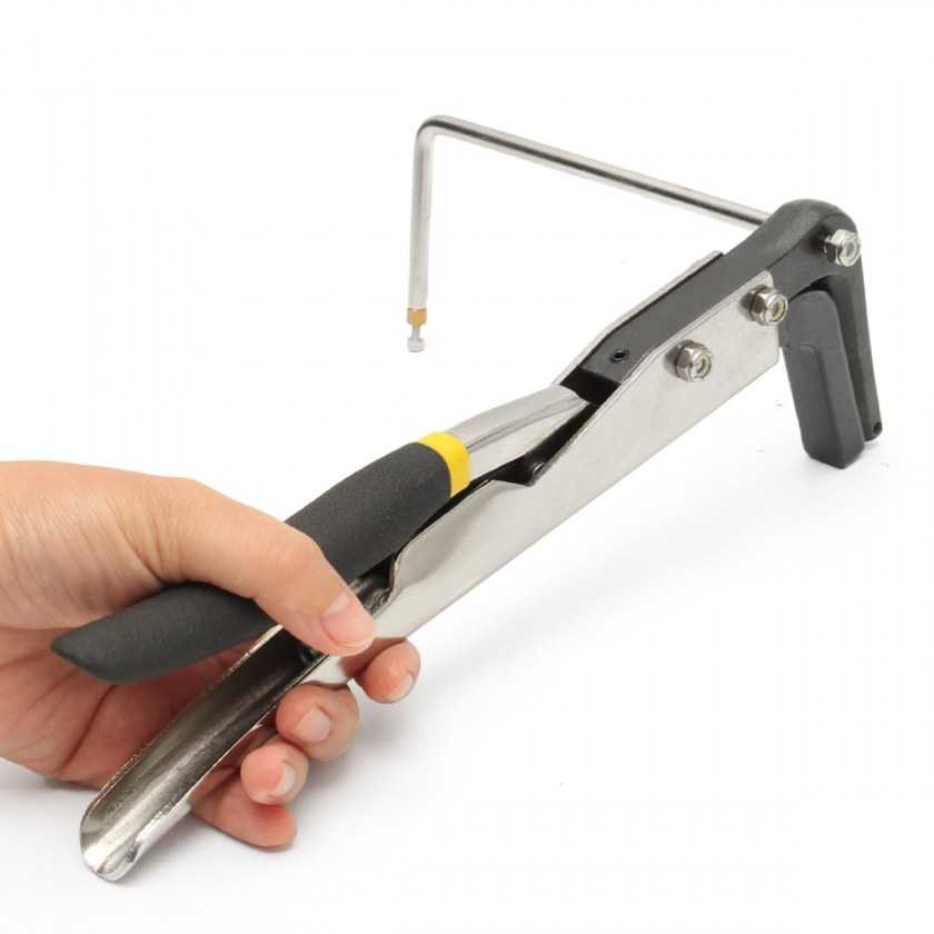 Из арматуры диаметром не менее 15 мм выгните скобообразную ручку-рычаг, которая двумя концами приваривается к уголкам. Остается дополнить конструкцию щечками из листовой стали толщиной 5 мм, и конструкция готова. Обязательно нужно снять 30-миллиметровые фаски 7*45° на концах заготовок пуансона и основания. Фаски снимаются по ребру, чтобы были удобно приварить оси из стального 10-миллиметрового прута к пуансону. Приварить прут нужно так, чтобы его ось совпала с ребром уголка.