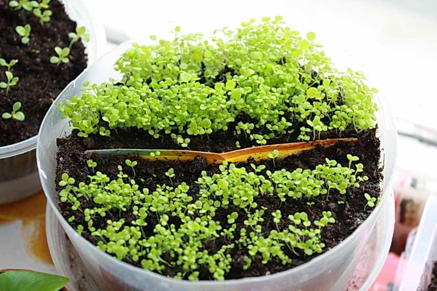 Емкость с посевами укрывают стеклом, держат в светлом и теплом месте при температуре от +18 до +22 °С. Регулярно проводят проветривания для защиты от грибка. Всходы появляются через 7 дней.