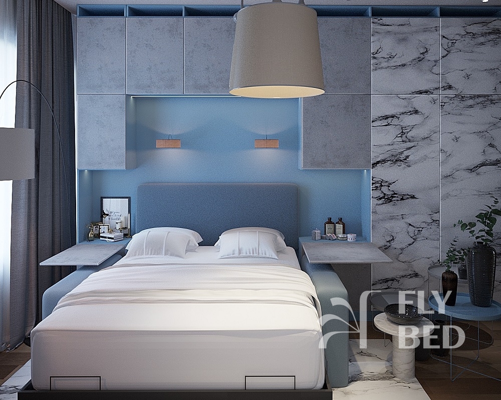 Если гостиная маленькая, его можно поставить у окна: это позволит освободить три стены для маневров и сэкономить место. Единственный недостаток – спать возле радиатора не всегда комфортно.