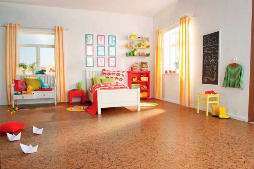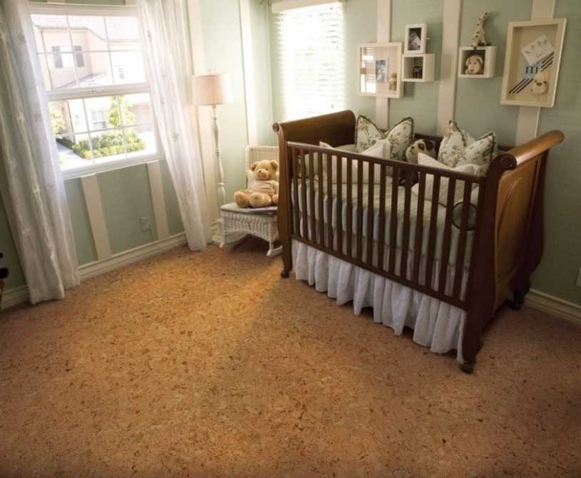 Пробковый пол в детскую – идеальное, но относительно дорогое решение. Пробка натуральна, экологична, полезна для позвоночника и суставов. Полы из такого материала: