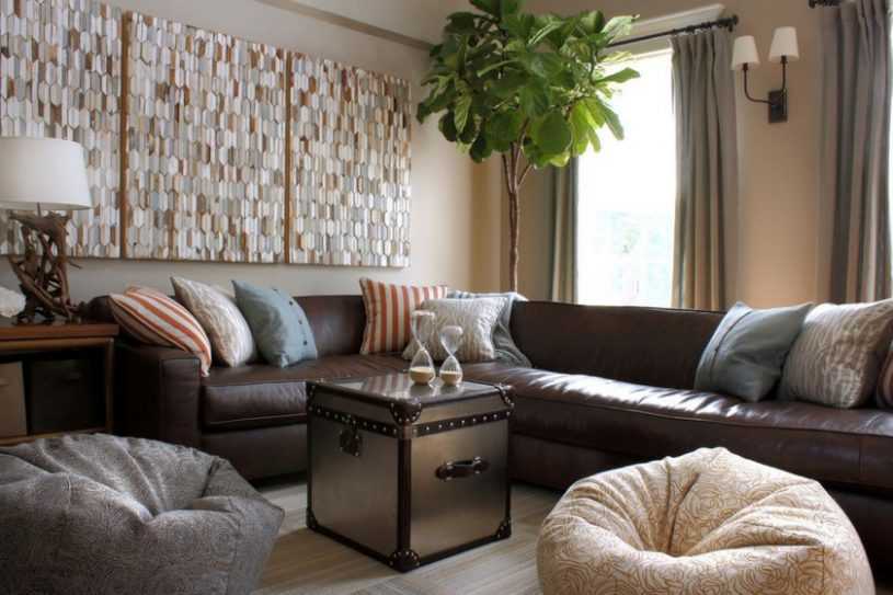 - Диван – незаменимый вариант для комнаты, где принимают гостей;