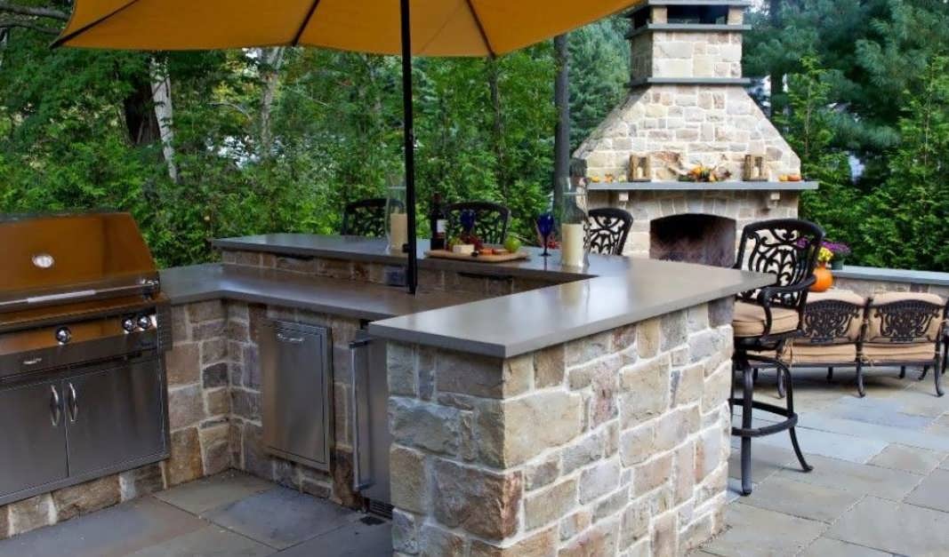 - открытая площадка обустраивается, когда свободного места на участке не так уж много, да и пикники проводятся нечасто. Для ее организации подойдет переносной мангал или барбекю, стол и навес над ним. При желании можно получить в итоге уютную зону отдыха, хоть и лишенную многих преимуществ закрытого варианта;