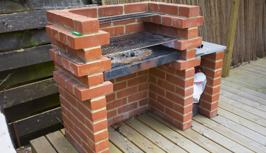 - Между кирпичами необходимо подготовить специальный выступ или установить металлические стержни, куда укладываются поддоны. Эти элементы убирают с наступлением холодов, подвергают специальной обработке и хранят до следующего сезона пикников.