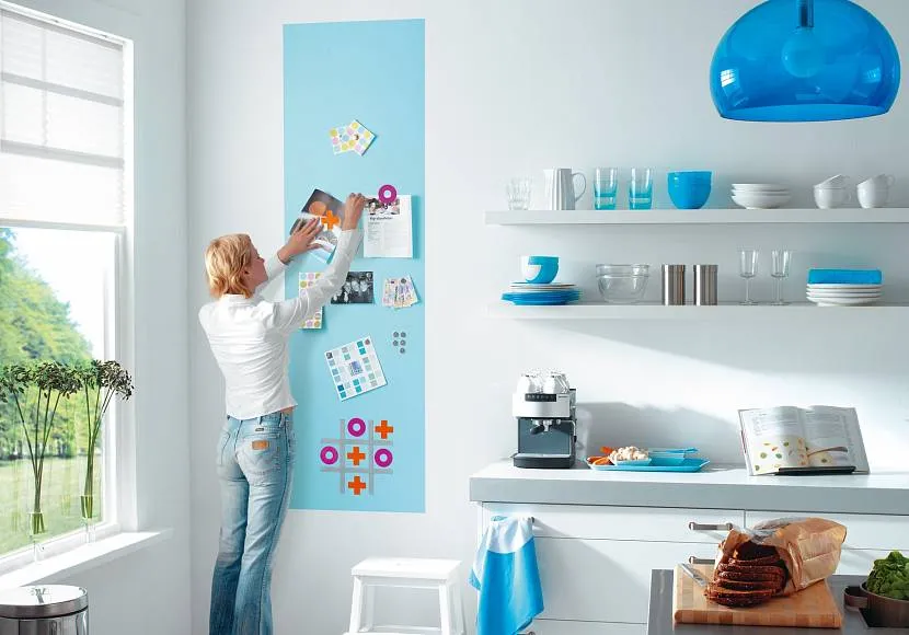 В последнее время магнитные и грифельные поверхности используются не только для декора детской комнаты, но и на кухне, в зале, спальне, ведь на них можно рисовать различные рисунки и, стирая, менять. А также, на таких поверхностях можно записывать рецепты, список покупок, список дел и т. д.