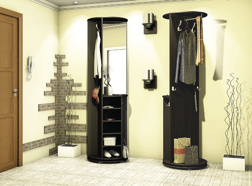 Если вместительность конструкции не стоит на первом месте, то небольшая треугольная или трапециевидная модель замечательно впишется в любую прихожую.