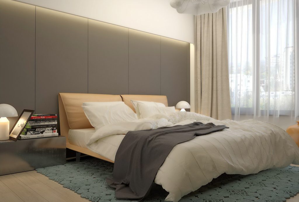 От планировки и размера комнаты будут зависеть габариты кровати, а от отделки цвет и материалы. Например, в классических и современных интерьерах будут отлично выглядеть кровати с обтянутыми кожей подголовниками, цвет обивки будет зависеть от общей гаммы спальни.