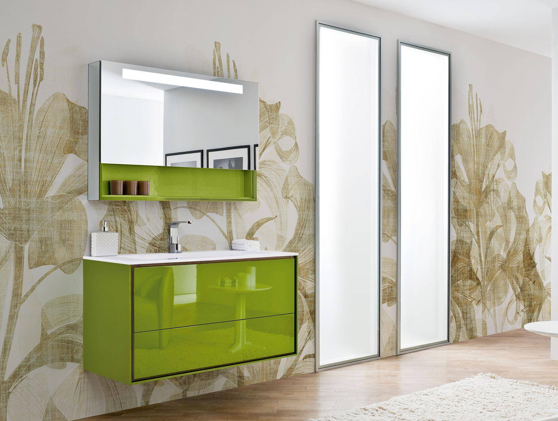 Самое оптимальное место — над раковиной. А наличие зеркальных элементов будет рациональным и стильным дополнением к внутреннему убранству ванной. Такие шкафы со встроенным зеркалом, прежде всего, зрительно увеличивают размеры внутреннего пространства, поэтому в душевые небольшой площади будет практичнее устанавливать несколько отражающих элементов. Функционально подвесные шкафы с зеркалом комплектуются одним и более софитами и розеточным блоком, для более комфортного пользования различными приспособлениями, характерными для ванных комнат. Немаловажный факт — розетка должна быть специального исполнения с защитой от влаги и сырости.