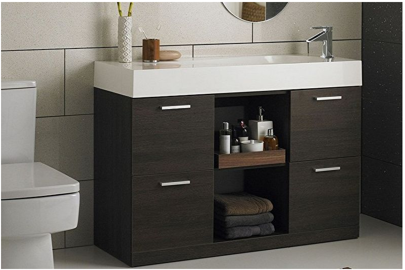 Необходимо учитывать несколько факторов: площадь помещения, подходящий к выбранному стилю дизайн, качество и прочность материалов, вместительность ящиков и шкафов. Исходя из выделенного бюджета, в первую очередь, покупаются тумбы под раковины и шкафы, а уже потом подбираются стеллажи и пеналы.
