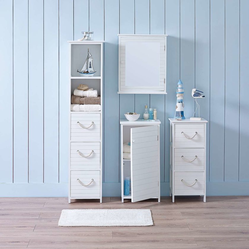 В последнем случае подойдут узкие шкафы, включающие порядка 4-6 ящиков. Для ванных комнат с большой площадью используют широкую мебель.