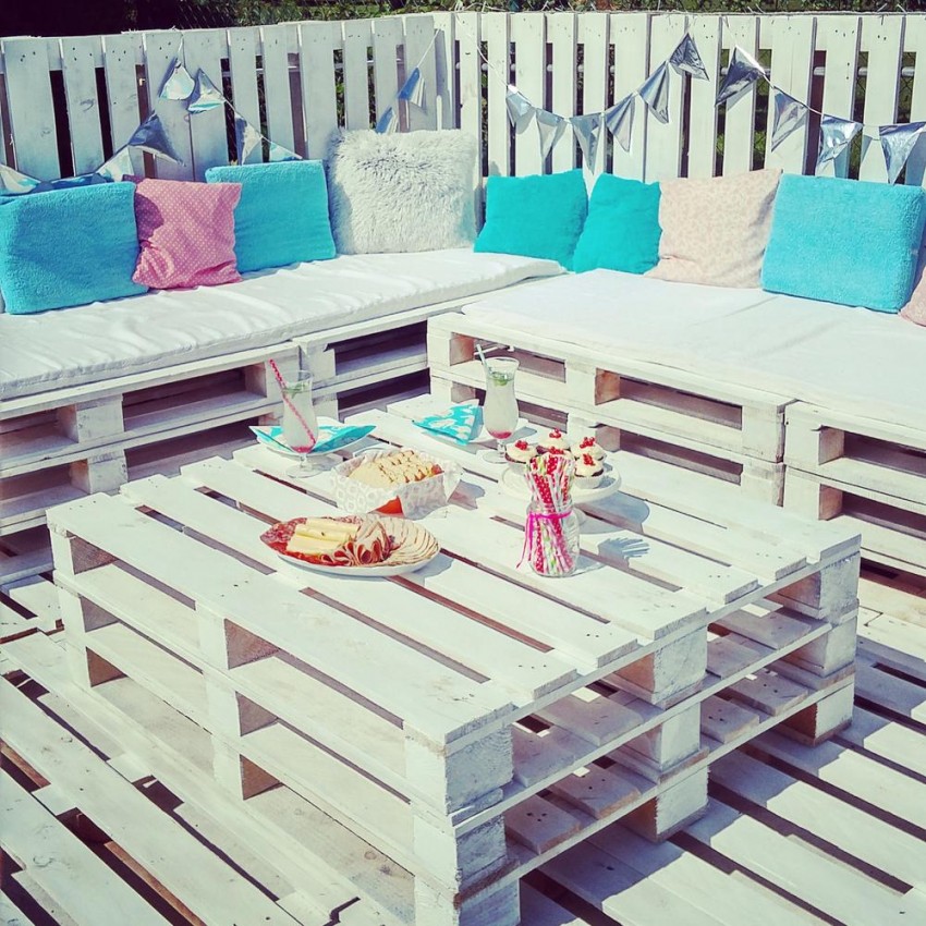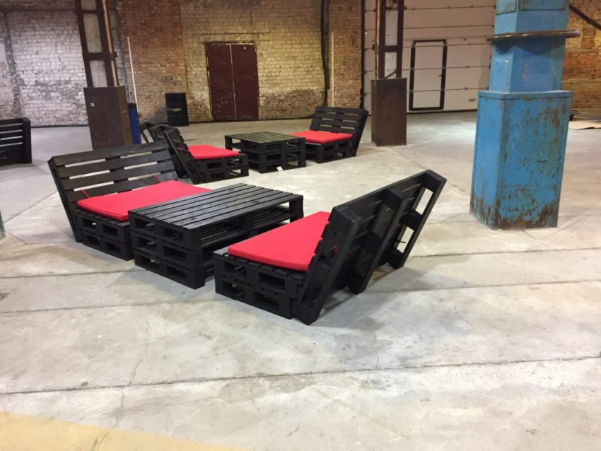 При большом количестве паллет можно с легкостью придумать и выполнить комплект мебели