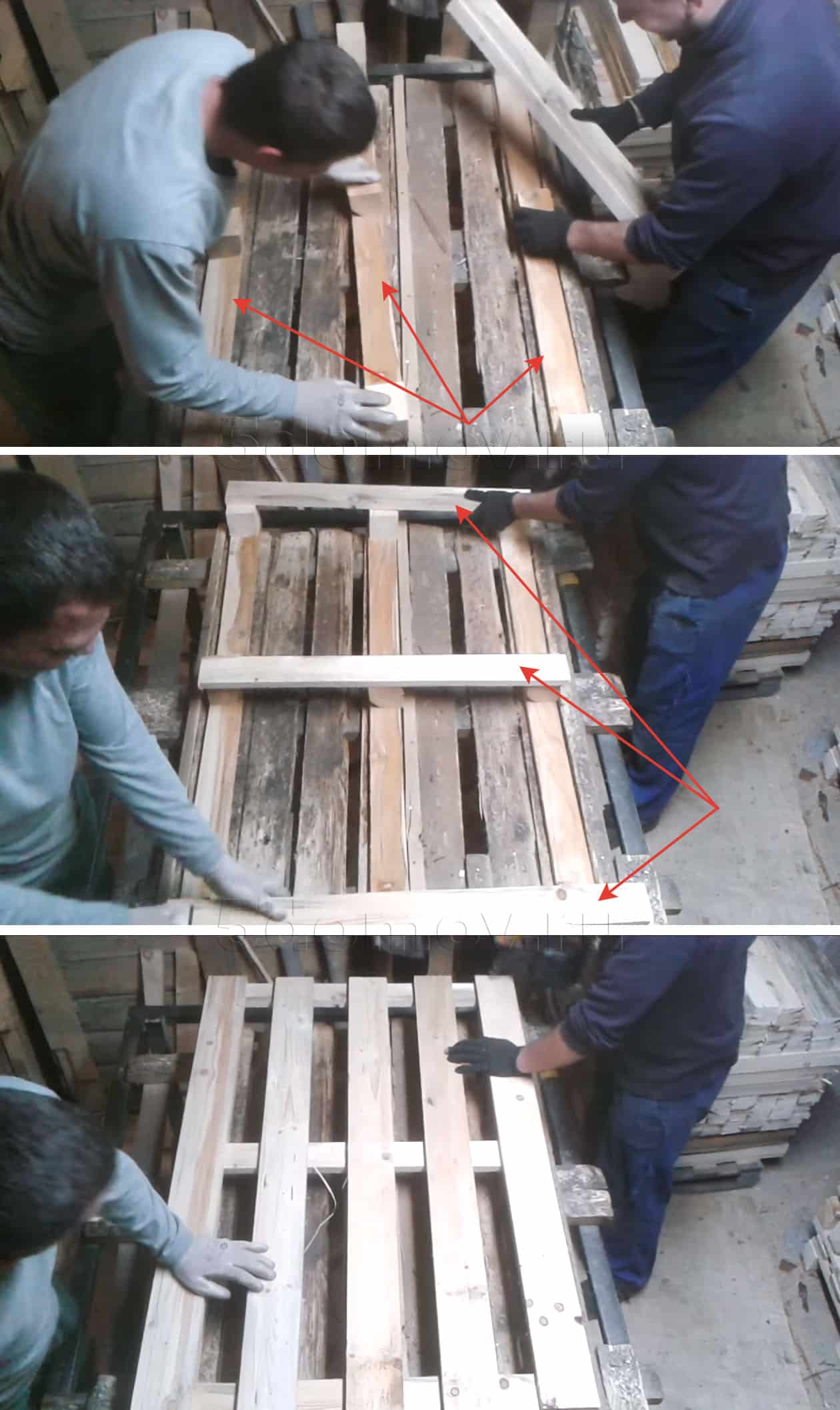 - Демонтируйте палеты. Ошкурьте деревянные элементы.