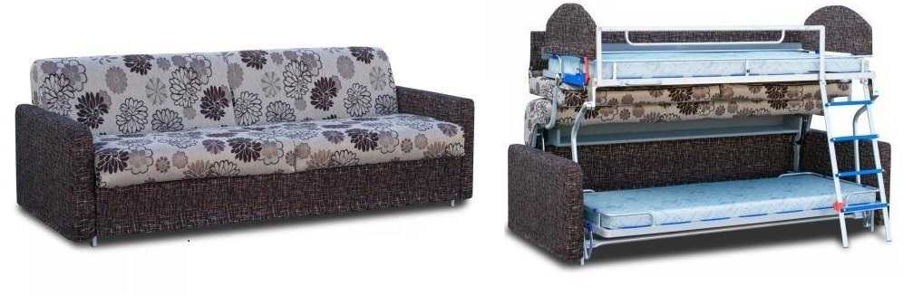Для детских комнат неплохой вариант — диван, который трансформируется в две кровати, расположенные одна над другой. В данной модели задействован сложный механизм, так что стоимость таких диванов-трансформеров немаленькая.