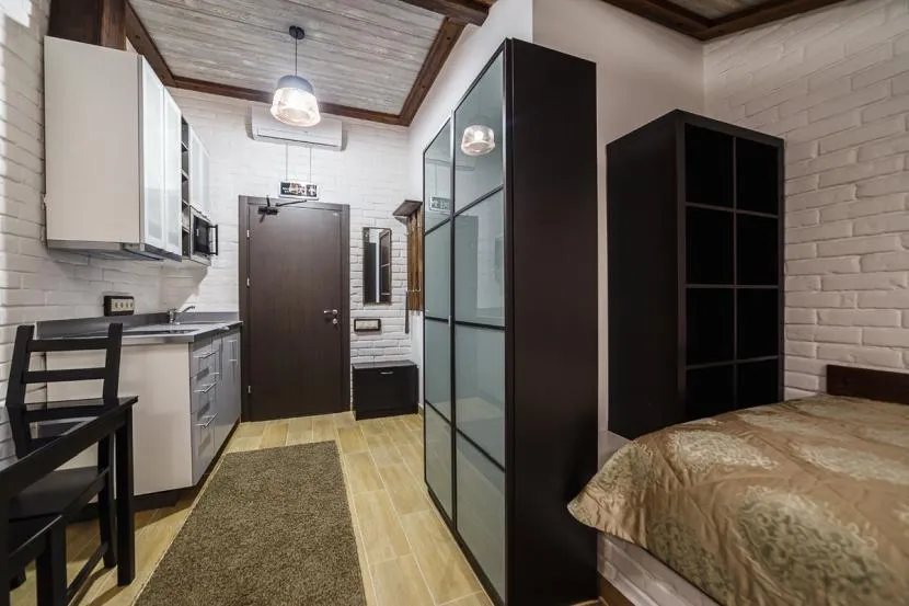 - Скооперировать спальню и кухню — это верный способ, соответствующий принятым европейским стандартам.
