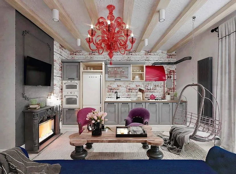 Создавая дизайн в данном жанре, вы выигрываете в значительных вещах. Самое главное, что вам не надо выбирать мебель, сочетающуюся по предмету дизайна. Применяйте старинные полученные стул и столик, оставшиеся для вас от предков. Вы осмыслите, то, что модернизм прекрасно смешивается с хай-тек.Во вторых — для вас не будет потребности брать в наём работников для отделки. Сохраните потолок открытым, в случае если он выполнен из бревенчатых брусьев. Либо никак не покрывайте стенки – кирпич прекрасно сгодится при формировании экстерьера. И, в-третьих, главное достоинство – бескрайний порыв воображения. Придерживаясь основному закону – пространство и большое количество света в помещении, вы сформируете собственными руками прекрасный дизайн в жанре лофт.
