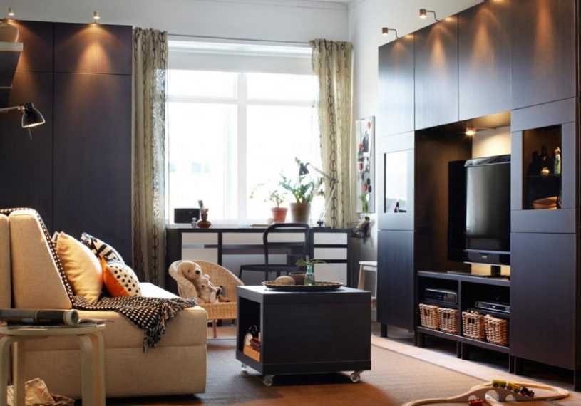 Благодаря трансформирующейся мебели, удается оптимально разгрузить гостиную и придать ей больше функциональности. Комплексная стенка-трансформер, объединенная с кроватью или диваном, станет идеальным решением для маленького зала или однокомнатной квартиры.