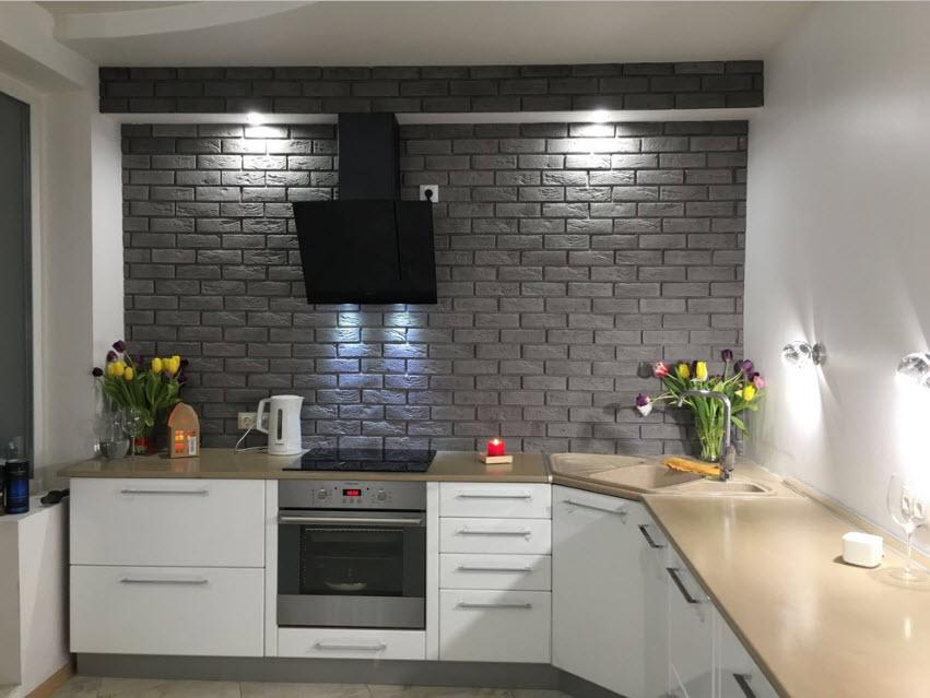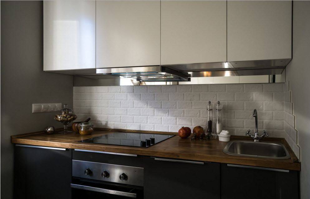 Вместе с металлической мебелью и стальными панелями используют кирпичную кладку и декоративную штукатурку. Чаще всего, вместо стандартных пеналов, размещают полки или этажерки. Металл максимально раскрывает красоту лишь при идеальной чистоте.
