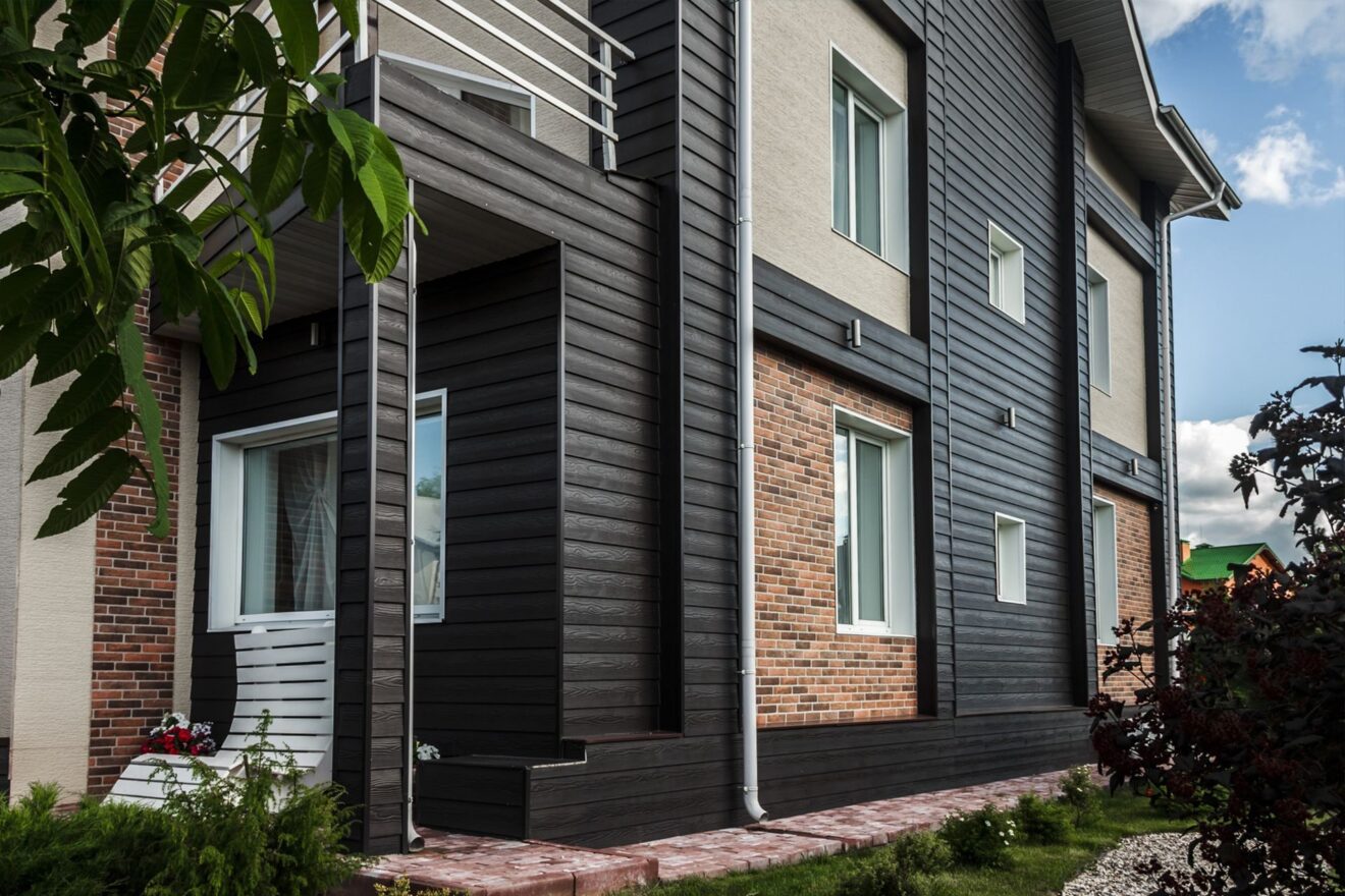 Такие цвета выбирают чаще всего, так как они являются нейтральными и спокойными. К черному, темно-серому, темно-синему, темно-зеленому и темно-шоколадному сайдингу обращаются чуть реже, поскольку многим потребителям такие материалы кажутся слишком мрачными. На самом же деле дома, отделанные таким образом, выглядят весьма привлекательно и презентабельно. Главное, использовать светлые оконные рамы и кровлю другого оттенка – темные краски должны быть разбавлены контрастными деталями.